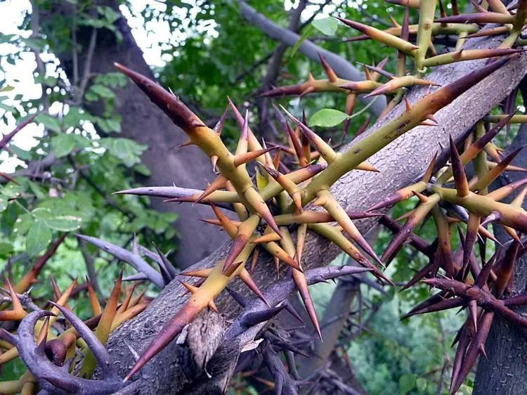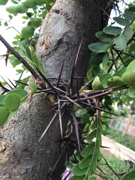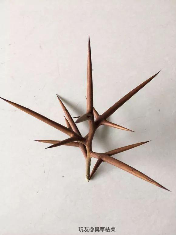 老盘去调查了一番,发现事情并不是那么简单!这东西叫皂角刺,也叫天丁!就是长下面这样▼