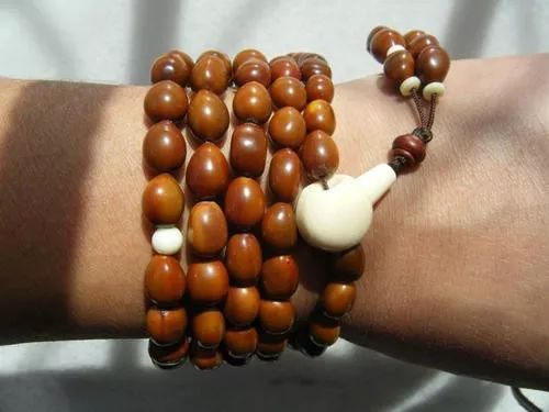它在文玩圈,有个特别富贵的名字叫“富贵菩提”!穿成手串是下面这个样子,是不是还不错▼