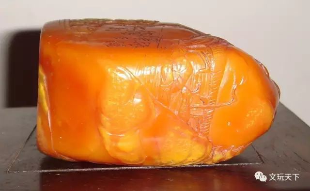 我国古代,印章如同现代社会中的身份证一样。国家、官吏和个人在社会生活中皆须以印记为凭证。皇家的私印往往在有重大国事家事时,雕刻以示纪念。而田黄石是一种非常适合制作印章的石头,是有名的印章石品种,也被人戏称为“印石三宝”。田黄石只有我国福建寿山的田中出产,因为色泽普遍泛黄色,又产在田里,故称田黄。