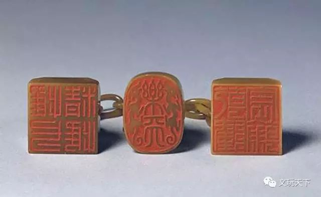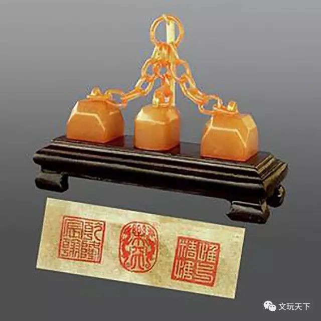 这枚印章叫田黄三连印章,现如今是北京故宫博物院的“镇馆之宝”。乾隆爷是这个世界上拥有宝玺印章最多的皇帝,多达1800多方,如果当时有吉尼斯世界纪录的话,那么乾隆爷绝对是榜上有名!这枚田黄三联印章更是由拥有上千方印章的乾隆爷亲自设计的,备受乾隆爷的青眯。
