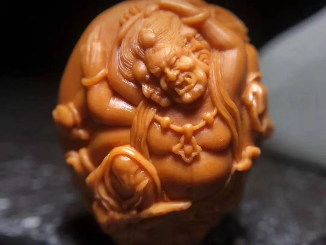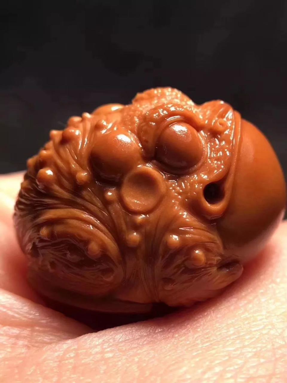 橄榄核雕在把玩中升值,近年来,橄榄核雕在艺术史上的升温,带动一大批投资者进入核雕市场,但是却只有极少的精品核雕才具有升值价值,想要寻找其中精品,不仅要看核雕的材质,工艺,题材,刀法,还有一个重要的身体标准就是—包浆,包浆是古玩行业的专业术语,是指文物表面由于长时间氧化形成的氧化层,“包浆” 其实就是古玩表面形成的自然光泽,经常玩橄榄核的人会经常将橄榄核在手中摩玩,时间长了,橄榄核表面会形成油脂层,颜色越来越红,并呈现出玛瑙版半透明质感,这就是橄榄核的包浆了。