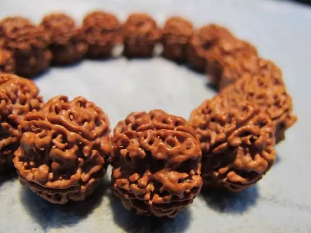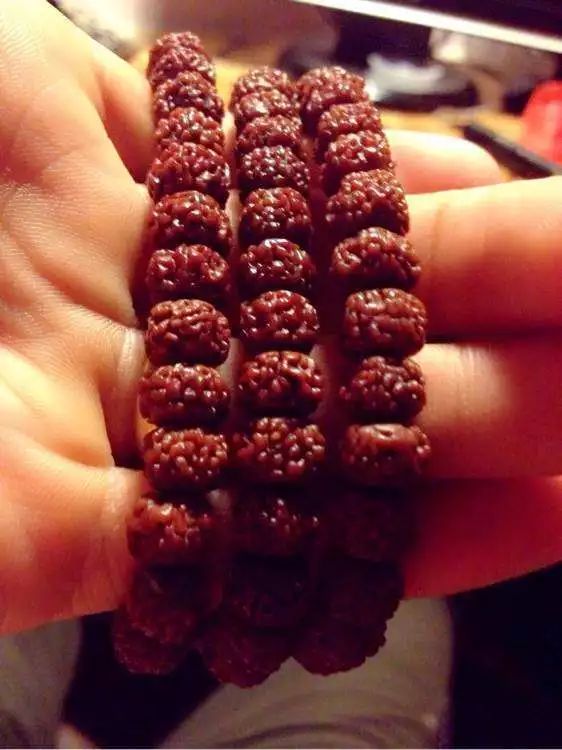 挑选到精品的金刚菩提,那么盘玩方法就能省下不少事儿,金刚菩提需要经过清理,才能够上手盘玩, 深度清理的过程一般是先用温水浸泡金刚菩提两到三个小时之后,再用钢丝刷对金刚菩提进行清理,刷掉金刚纹理中的残留果肉和脏污。刷完之后,将金刚菩提放置在阴凉入阴干。阴干后就可以上手盘玩了。前期盘玩金刚菩提的时候,遵循着刷七盘三的规则,就是多刷,这样才能够尽快的上色,后期有了包浆之后,就可以盘七刷三了,金刚菩提对汗液中的酸性物质是非常喜好的,能够与金刚菩提中的花青素发生化学反应,从而上色,所以,大汗手,除了注意清洁之外,就可劲的盘就好了。