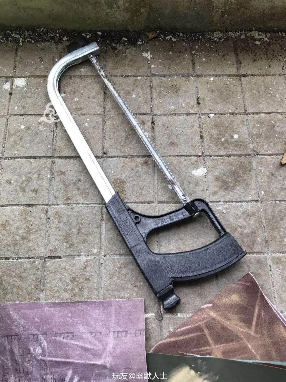 他先用铅笔,把三界牌的轮廓画出来,然后用锯子,一点点锯出大型。