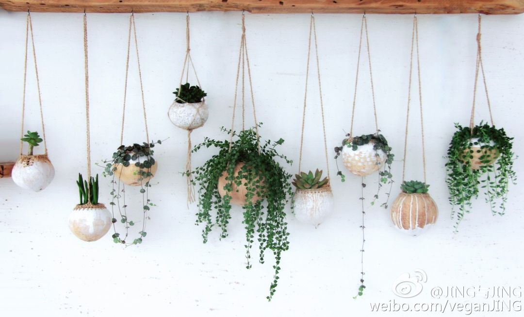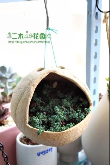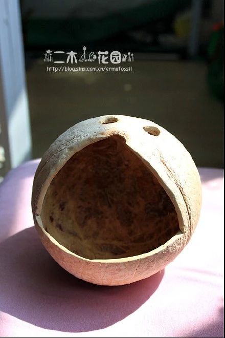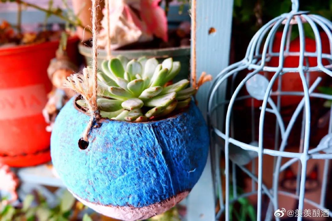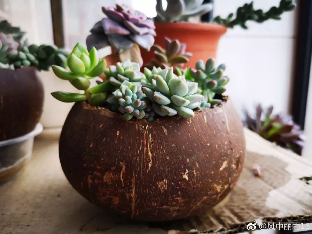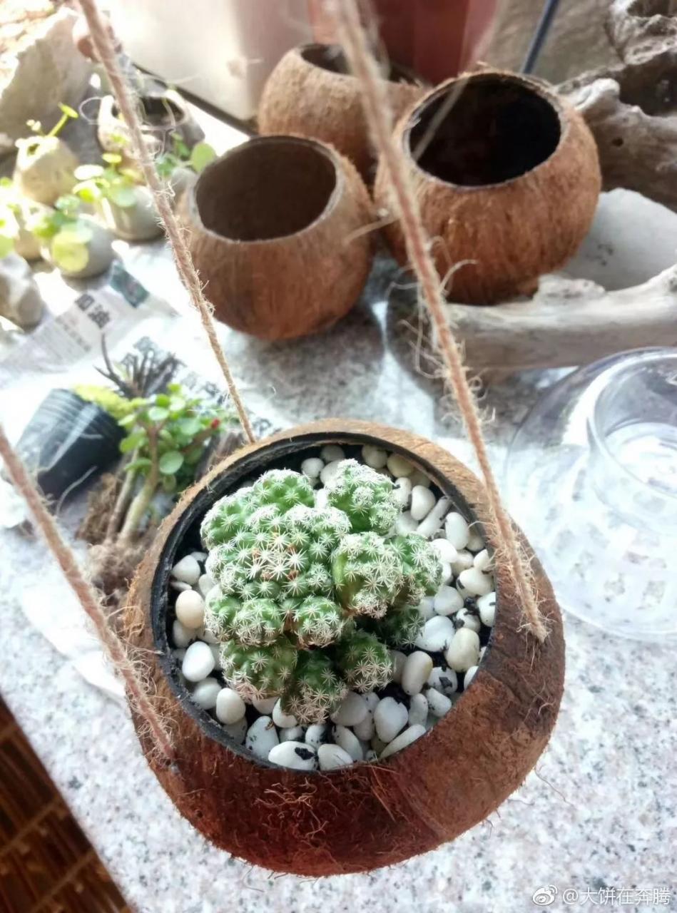 最美的是做花盆。椰子壳顶部最脆弱,简单处理一下,做成自己喜欢的形状,种上多肉就很美好