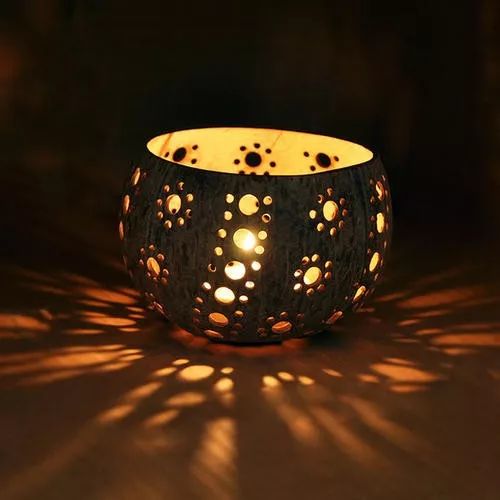 除了做花盆,椰壳还可以做灯,也很漂亮~