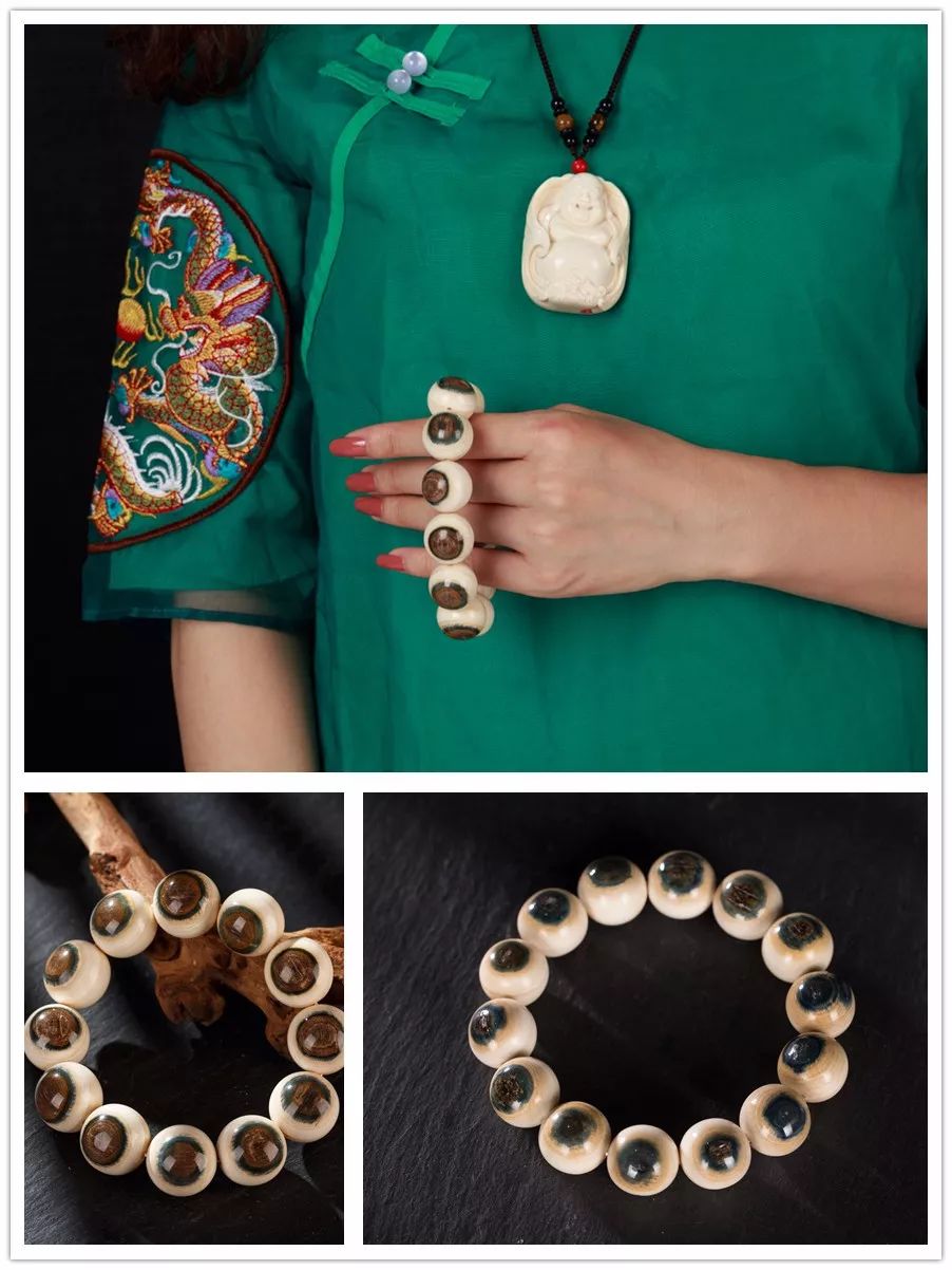 彷如天眼般的稀有佛珠,赤红牙皮与润白牙纹形成张狂而鲜明的对比,雕刻精巧圆润之器物,即成天然与人工斧凿的完美结合,其蕴含千万年河流山脉的进化历史。