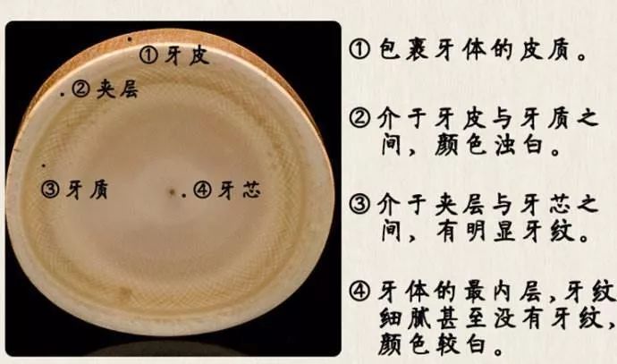 猛犸牙会有自己独特的牙纹,猛犸牙的史垂格线角度小于 90 度。此外,越接近牙心越细越密越不明显。猛犸牙也一样,接近表皮的牙纹明显,越到内部靠近牙心越不明显,这也是判断猛犸象牙真假很重要的一点。这是猛犸象牙真假辨别的重要方法。